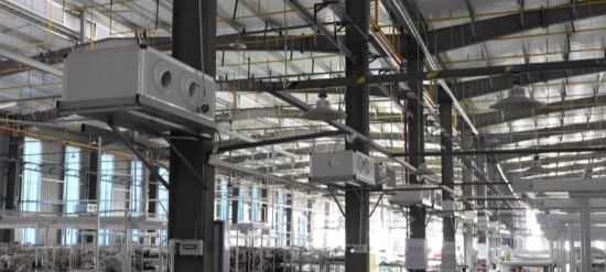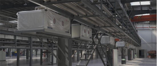 JINGBEN竞本氟水一体大空间工业空调创新的设计、硬核的技术,为企业实现了四大省电:省去冷量预制费电、省去冷量传输费电、省去冷量补偿费电、省去冷量补差费电。
