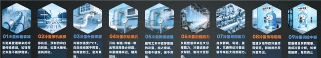 传统工业中央空调的三大元凶也带来了行业的“九大耗能”:冷量传输衰减、冷量停机浪费、冷量外排挥霍、冷量供给滞后、冷量降温缓慢、冷量沿程阻力、冷量局部阻力、冷量传导阻隔、冷量供给中断;