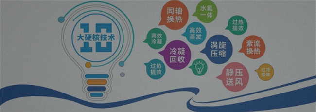 冷凝回收、水氟一体、同轴换热、涡旋压缩、静压送风、高效蒸发、高效冷凝、紊流换热、过冷提效、过热提效等